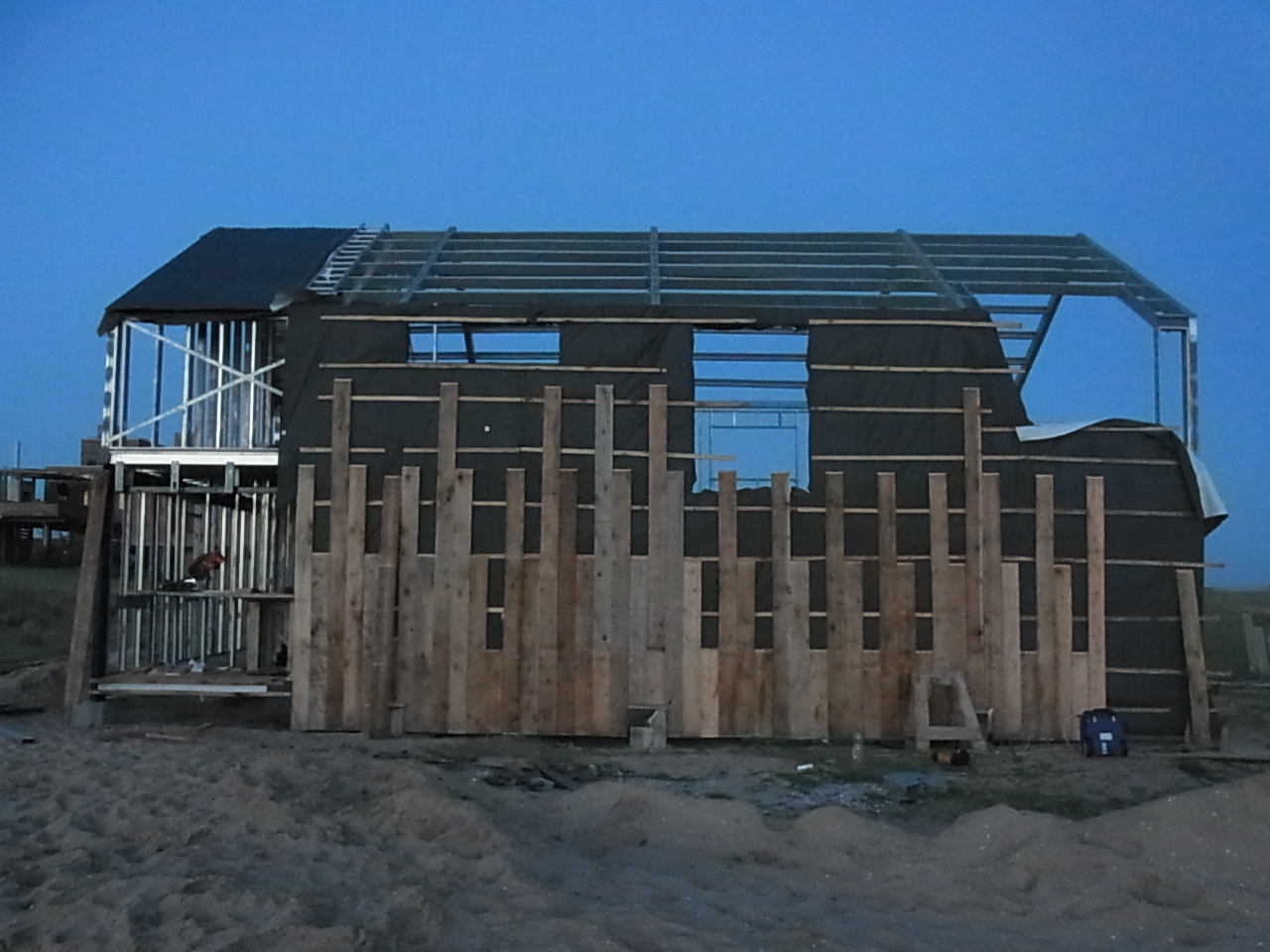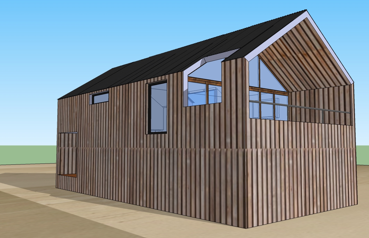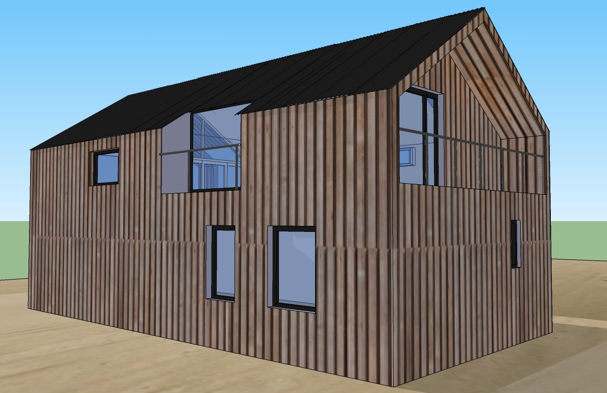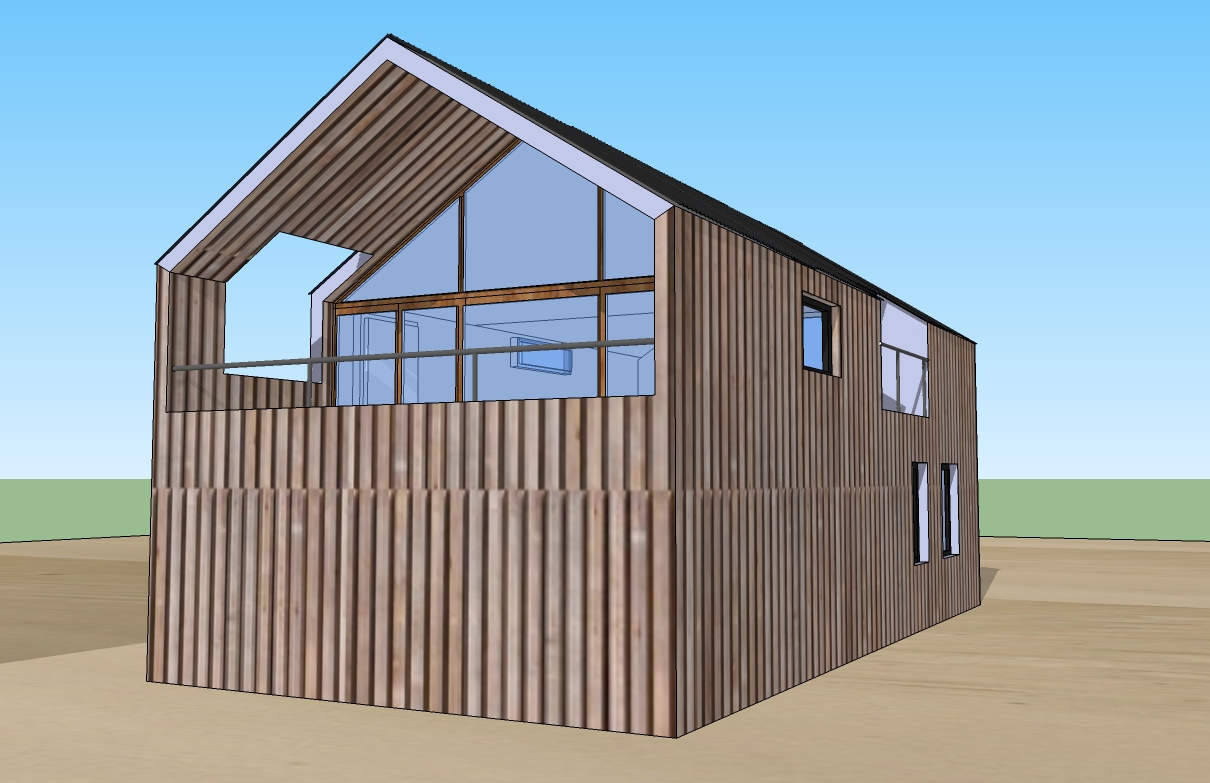 Paredes y techo: Sistema Steel Framing revestido en madera al exterior.