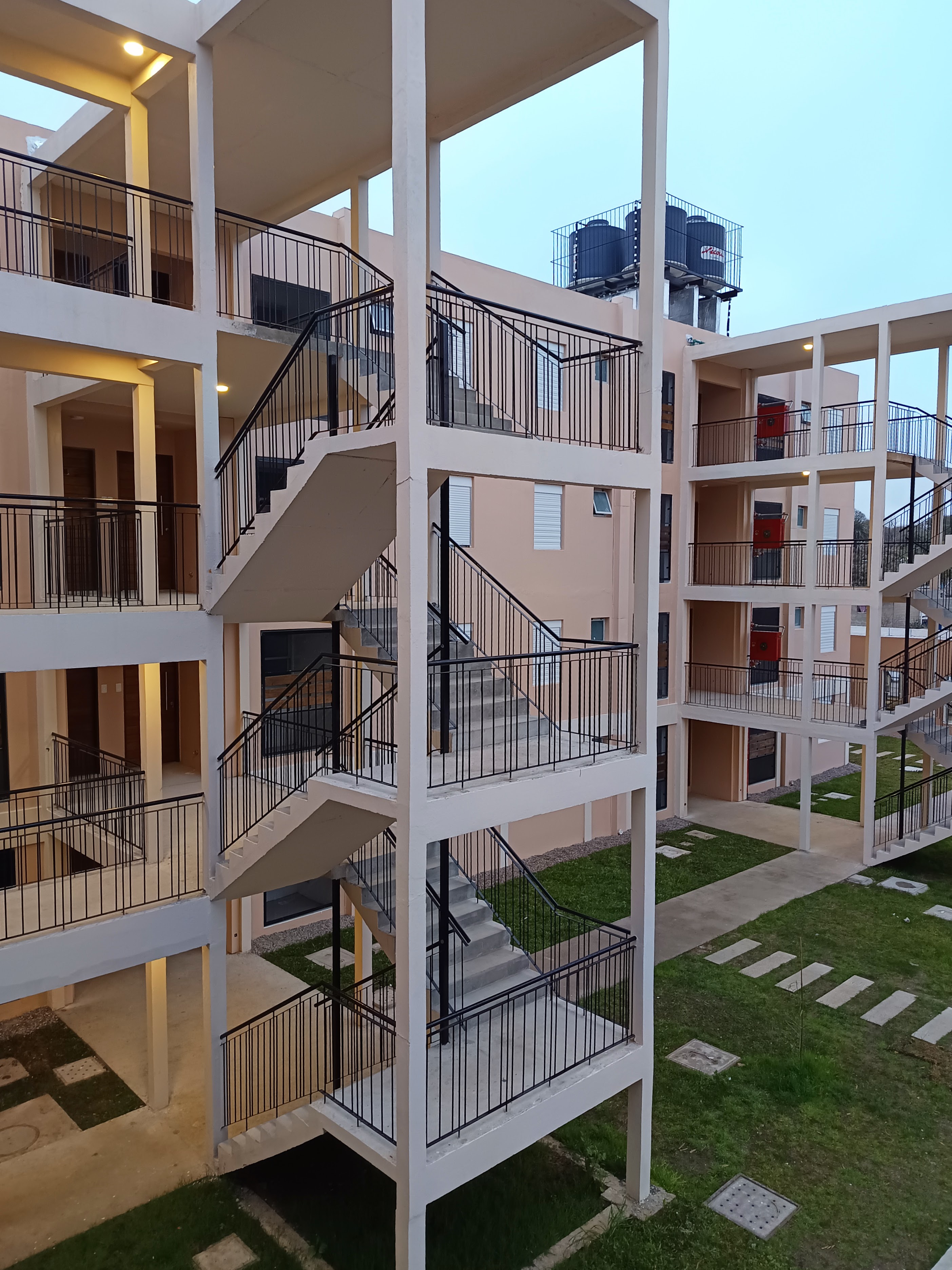 Sistema constructivo: EMMEDUE; Sistema de muros portantes conformados por tabiques de 15 cm espesor, compuestos por panel de EPS e=8 cm + revoque structural (3.5 cm espesor a cada lado) adherido a malla structural metálica (∅42). Entrepisos (de 15 cm de espesor), compuesto por panel EPS e=10 cm+ carpeta de compression.